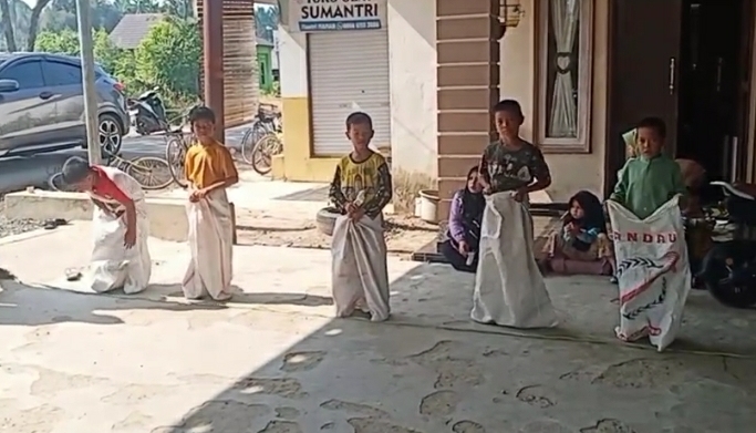 Sementara anak-anak yang ikut perlombaan tampak antusias mengikuti berbagai perlombaan antara lain, lomba senam pinguin, lomba makan kerupuk, dan lomba lari karung,