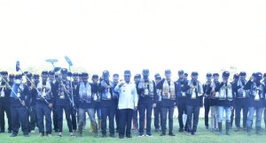 Berpakaian kaos lengan panjang, mengenakan selepang sarung di leher serta topi, pasukan Elang Darat Karhutla pun menyampaikan kesiapannya ketika dikukuhan Paman Birin.