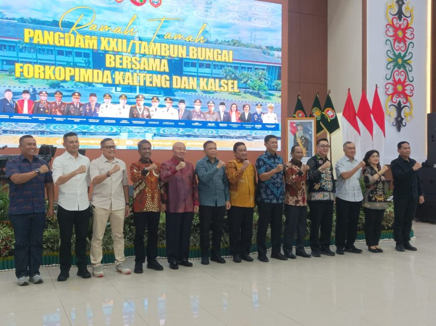 PALANGKA RAYA – Panglima Komando Daerah Militer (Pangdam) XXII/Tambun Bungai menggelar kegiatan ramah tamah bersama Forum Koordinasi Pimpinan Daerah (Forkopimda) Kalimantan Tengah dan Kalimantan Selatan di Balai Berkah Makodam XXII/TB, Kota Palangka Raya.