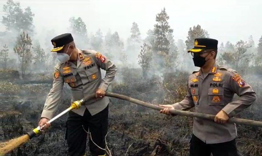 PALANGKA RAYA, teladankalimantan.com – Wakapolda Kalimantan Tengah Brigjen Pol Mohamad Agung Budijono, melakukan pemadaman api di lokasi kebakaran lahan dan hutan (karhutla) yang berada di Desa Tanjung Taruna, Kec. Jabiren, Kab. Pulang Pisau, Prov. Kalteng.