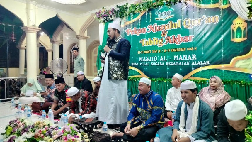MARABAHAN, teladankalimantan.com—Acara pekan Nuzulul Quran dan Tablig Akbar yang berlangsung di Masjid Al Manar, Desa Pulau Sugara, Kecamatan Alalak, Kalimantan Selatan pada Rabu malam (27/3/2024) atau bertepatan dengan malam ke 17 Ramadan 1445 H berlangsung semarak.