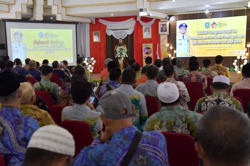 KANDANGAN, teladankalimantan.com-Pemerintah Kabupaten Hilu Sungai Selatan (Pemkab HSS) menggelar Sosialisasi Laporan Harta Kekayaan Penyelenggara Negara (LHKPN) dan Antikorupsi bagi Kepala Desa se-Kabupaten HSS, Kamis (2/11/2023).