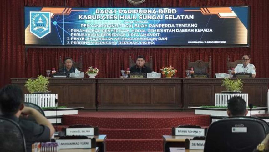 Plh Sekretaris Daerah Kabupaten HSS H Zulkipli mengatakan, adapun tiga buah Ranperda disampaikan tersebut diantaranya, Penambahan Penyertaan Modal Pemerintah Daerah Kepada Perusahaan Perseroan Daerah Tirta Amandit, Penyelenggaraan Ketenagakerjaan dan Perizinan Berusaha Berbasis Risiko.
