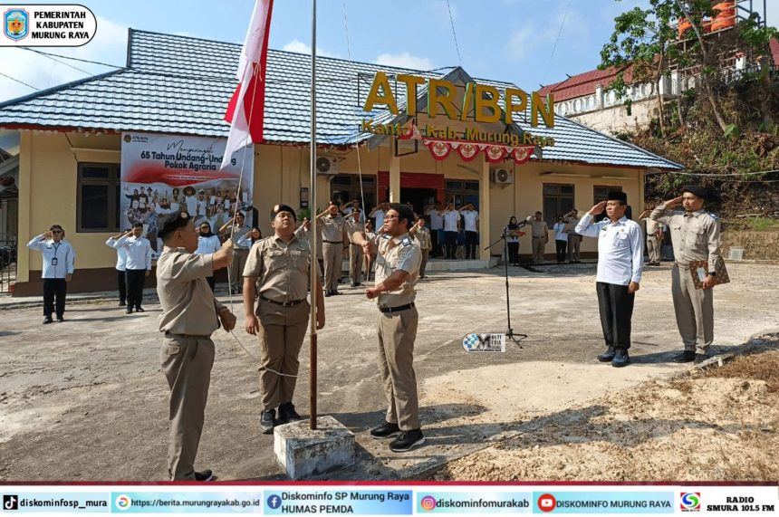 PURUK CAHU, teladankalimantan.com – Pemerintah Kabupaten Murung Raya (Mura) memperingati Hari Agraria dan Tata Ruang (HANTARU) 2025 yang digelar di halaman Kantor ATR/BPN Murung Raya, Selasa (23/9/2025). Bupati Heriyus diwakili Plt. Sekretaris Daerah (Sekda), Sarwo Mintarjo, bertindak sebagai pembina upacara.