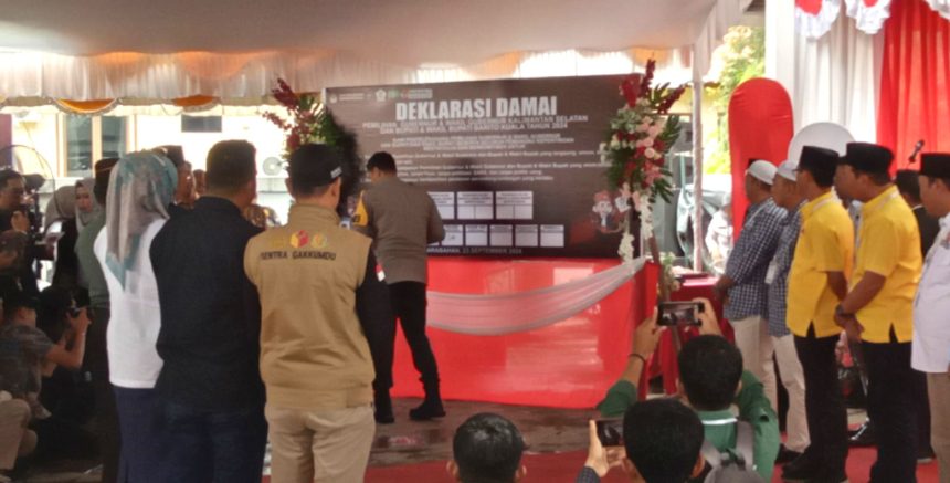 “Alhamdullillah kita sudah bersuka ria, bersenang-senang mendapatkan nomor urut masing-masing. Setiap nomor urut itu adalah jadi berkah pasangan masing-masing,” ujar Dinansyah, pada acara Deklarasi Kampanye Damai, di KPU Batola, Senin (23/09/2024).