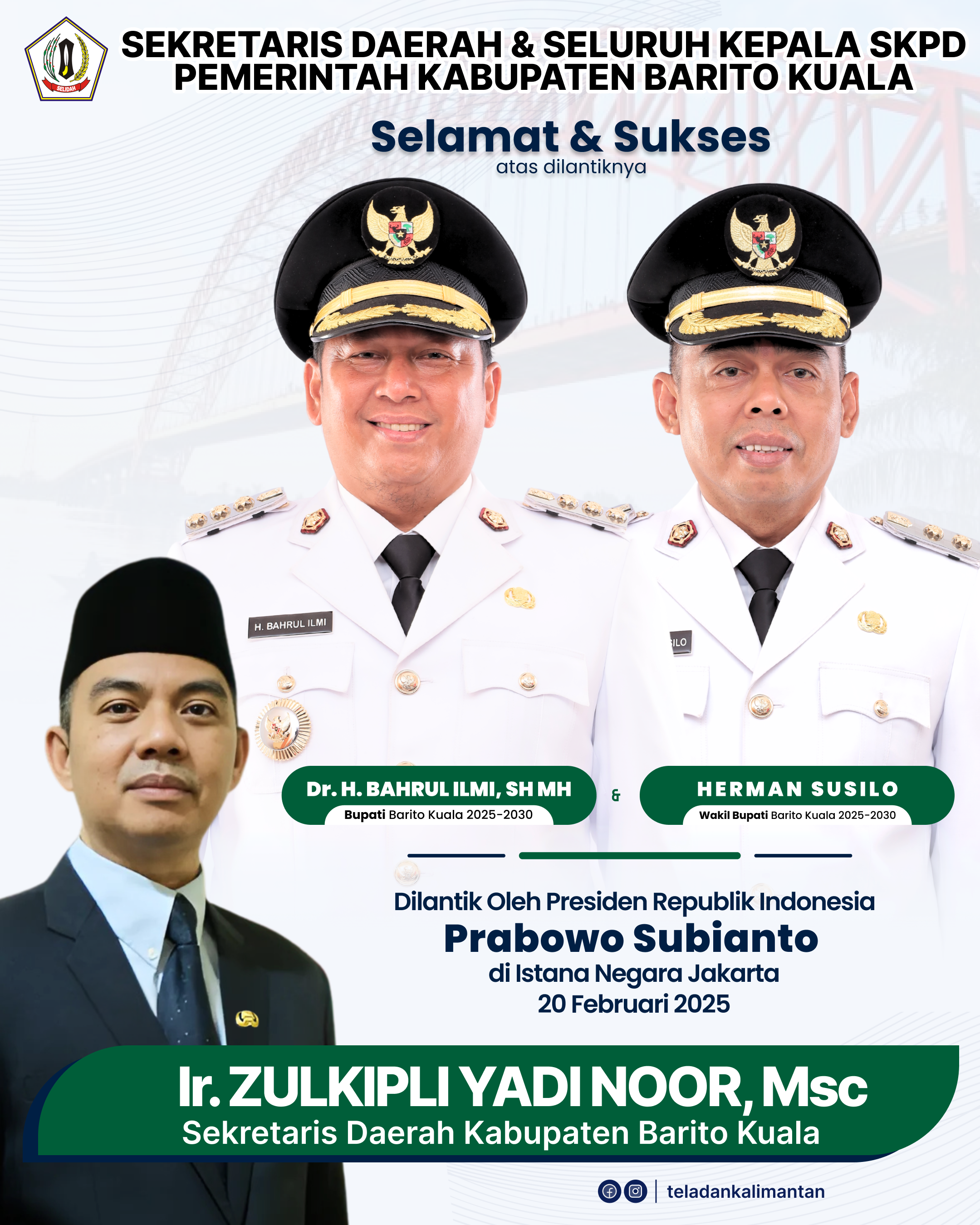 Marabahan, Teladankalimantan.com– Pimpinan beserta anggota DPRD Kabupaten Barito Kuala mengucapkan :