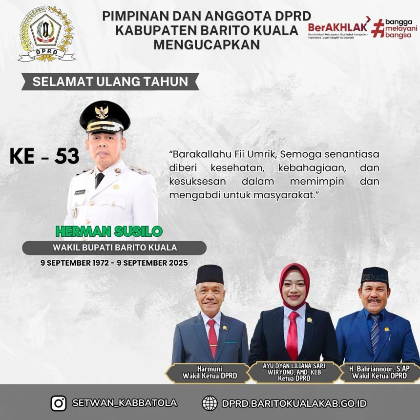Selamat Ulang Tahun Ke-53 Bapak Herman Susilo Wakil Bupati Barito Kuala