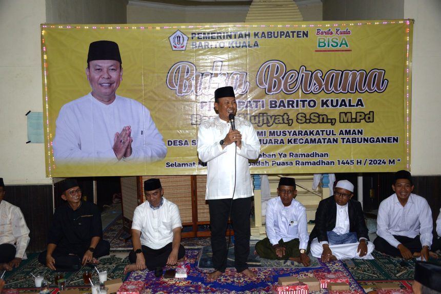 Safari Ramadhan tersebut dalam rangka buka puasa dan sahur bersama serta beragendakan penyerahan bantuan tempat ibadah di wilayah Kabupaten Batola Tahun 2024.