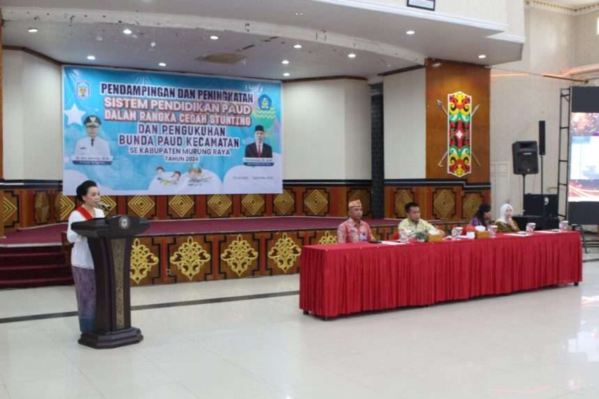 Puruk Cahu, teladankalimantan.com – Pj Bupati Murung Raya (Mura), Hermon didampingi Pj Ketua Tim Penggerak Pemberdayaan dan Kesejahteraan Keluarga (TP PKK) secara resmi membuka Kegiatan Pendampingan dan Peningkatan Sistem Pendidikan PAUD dalam rangka cegah stunting, di GPU Tira Tangka Balang, Jumat (20/9/24).