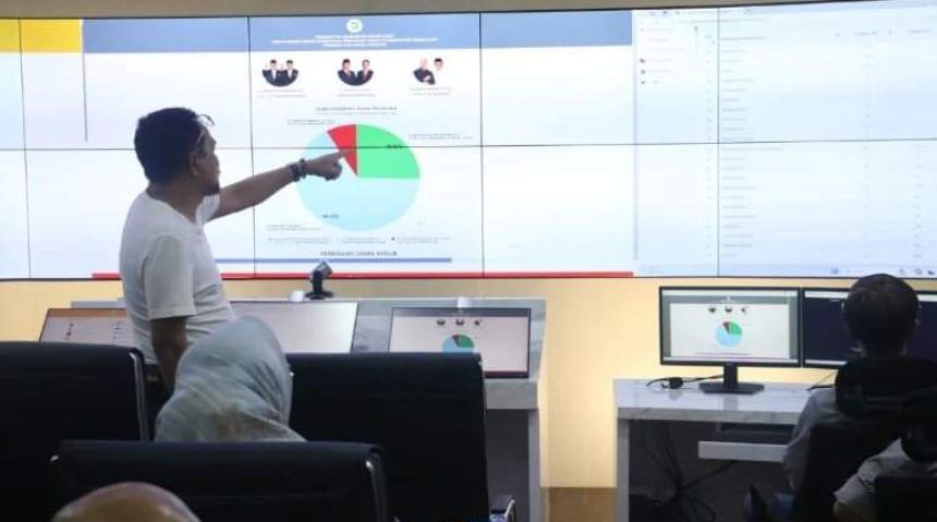 “Alhamdulillah, kita sudah punya command center. Meski belum kita resmikan, tapi ini sudah sangat representatif. Bagaimana tadi kita sudah melihat hasil penghitungan suara,” ucapnya.