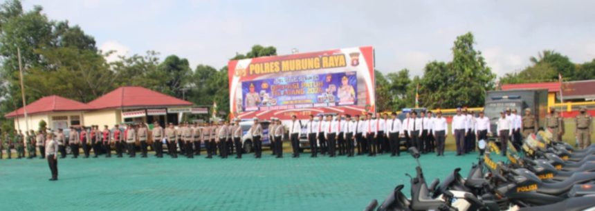 Puruk Cahu, teladankalimantan.com – Polres Murung Raya (Mura) Polda Kalteng, melaksanakan apel gelar pasukan Operasi Patuh Telabang 2024 di lapangan Mapolres setempat. Apel dipimpin langsung Kapolres Mura AKBP Irwansyah dihadiri Pj Sekda Mura, Rudie Roy, Wakil Ketua II DPRD Mura, Pabung 1013/Mtw, perwakilan Kajari Mura, perwakilan Kasat Pol PP, perwakilan Dishub Mura. Operasi Patuh Telabang 2024 dengan tema “Tertib Berlalu Lintas Demi Terwujudnya Indonesia Emas” akan dilaksanakan selama 14 hari mulai 15 Juli sampai dengan 28 Juli 2024 pada Senin (15/7/2024).