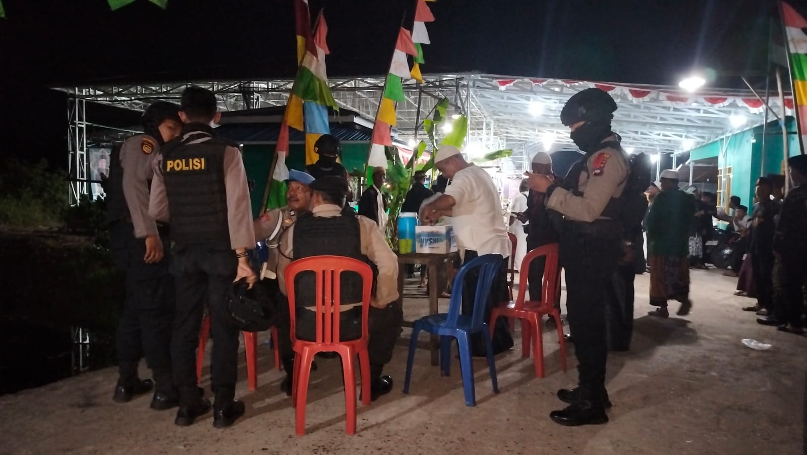 Sejumlah petugas dari Polres Batola dan Polsek Berangas tampak berbaur dan berada di pintu masuk acara pengajian.