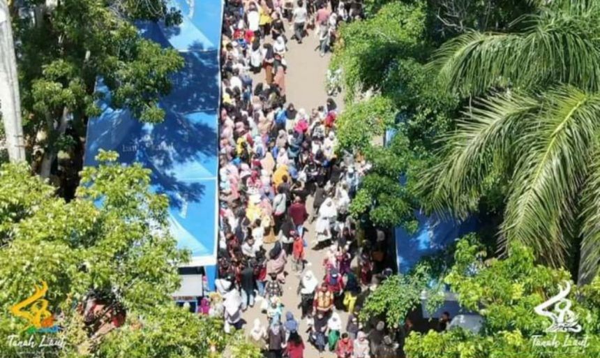 PELAIHARI, teladankalimantan.com- Ratusan warga Tanah Laut antusias padati area Kantor Bupati Tanah Laut yang sudah dipenuhi oleh jejeran gerai makanan gratis yang disediakan oleh seluruh SKPD, perusahaan daerah, serta pihak lainnya dalam rangka memeriahkan acara Puncak Hari Jadi ke – 58 Kabupaten Tanah Laut, Selasa (5/12/2023).