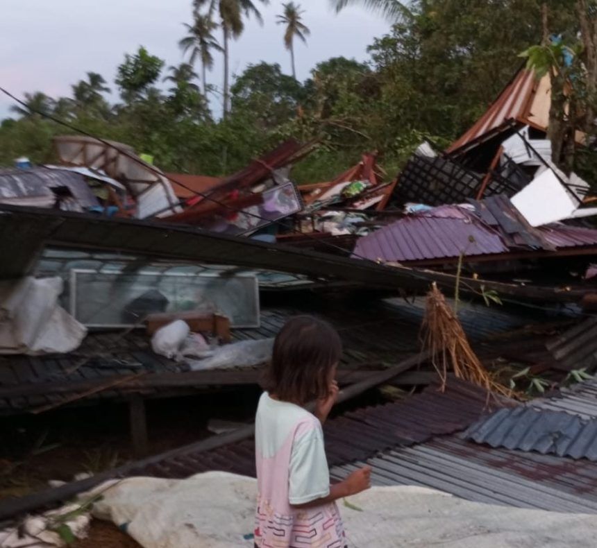 MARABAHAN, teladankalimantan.com—Sedikitnya 44 rumah warga dan satu bangunan SD, di Desa Beringin RT, 2 , 6 dan 7, Kecamatan Alalak, Kabupaten Batola, Kalimantan Selatan rusak akibat diterjang musibah angin puting beliung yang terjadi pada Senin sore (6/11/2023) sekira pukul 16.00 WITA.