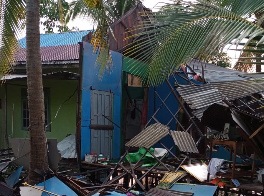 Bukan hanya atap rumah yang beterbangan melainkan juga ada bangunan rumah yang roboh karena tak mampu menahan kencangnya angin puting beliung.