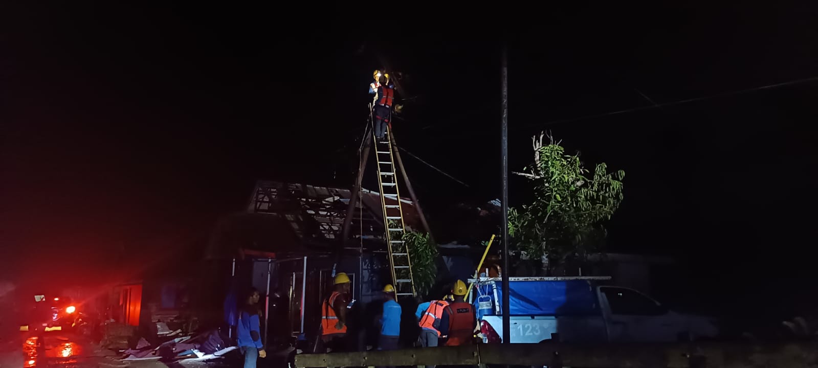 Hingga berita ini ditayangkan, listrik di lokasi musibah kejadiaan padam dan gelap gulita. Sejumlah petugas PLN tampak melakukan perbaikan agar aliran listrik kembali normal.