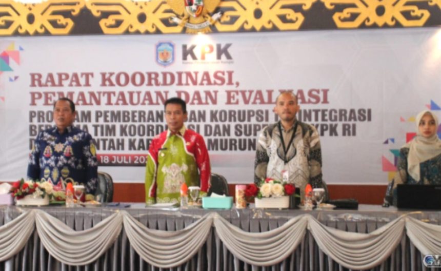 Puruk Cahu, teladankalimantan.com – Kembali pihak dari Pemkab Murung Raya (Mura) laksanakan Rapat Koordinasi (Rakor) Pemantauan dan Evaluasi Program Pemberantasan Korupsi Terintegrasi. Hadir dalam kesempatan ini, Pj Bupati Mura, Hermon, Pj Sekda Mura, Rudie Roy, Asisten I Setda Mura, Serampang, Koordinator Tim Koordinasi, Supervisi dan Pencegahan Wilayah III KPK RI, Kepala Perangkat Daerah, Camat dan tamu undangan lainnya.