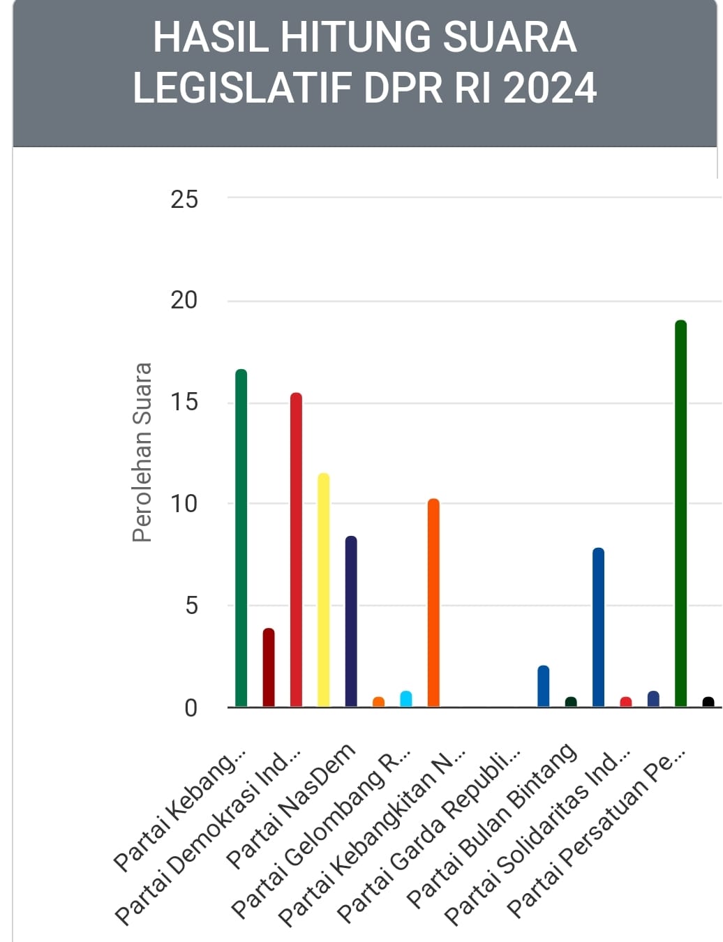 Sementara untuk posisi kedua ada Partai Kebangkitan Bangsa, serta kemudian disusul PDI P, Partai Golkar, PKS, Nasdem, Demokrat, dan sejumlah partai lainnya.