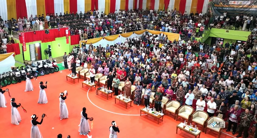 PURUK CAHU-Ribuan umat Kristiani dari berbagai wilayah di Kabupaten Murung Raya (Mura) memenuhi GOR Tana Malai Tolung Lingu, Puruk Cahu, pada Senin (1/12) untuk mengikuti Ibadah Perayaan Natal Oikumene ASN, TNI, Polri, dan masyarakat. Suasana penuh sukacita tampak sejak awal acara, menandai antusiasme tinggi jemaat dalam menyambut perayaan tersebut.