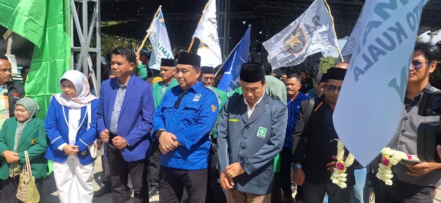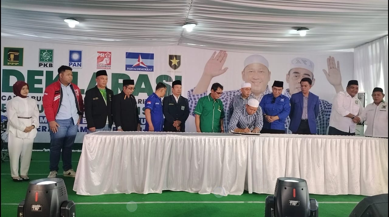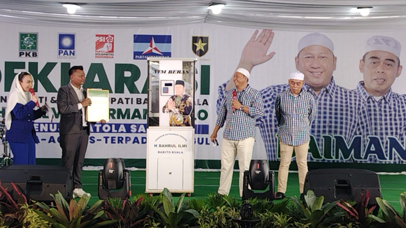 Acara deklarasi tampak dihadiri ketua dan jajaran Partai pengusung. Hadir pula anggota DPRD Batola dari PPP, PKB, PAN serta anggota DPRD Kalsel terpilih Sadam Husin Naparin.