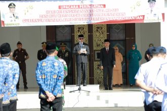 Bupati Batola H Bahrul Ilmi mengucapkan terimakasih atas kehadiran Gubernur Kalsel H Muhidin di Kabupaten Batola pada acara Safari Ramadhan 1447 Hijriah/2026.