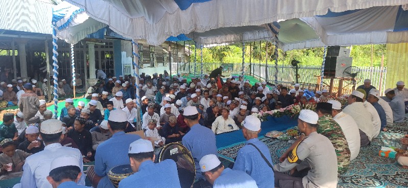 Acara tampak dihadiri oleh Ahlil bait H Bahrul ilmi dan keluarga, anggota DPRD Kalsel H Sadam Husin Naparin, danramil, dan kades Tatah Masjid, guru agama, serta para habib.