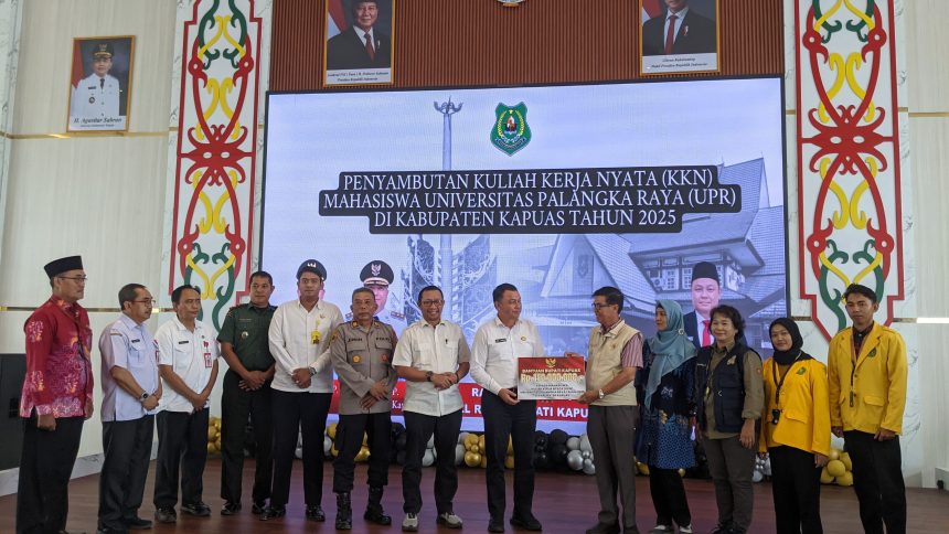 KUALA KAPUAS, teladankalimantan.com-Sebanyak 360 mahasiswa Universitas Palangkaraya (UPR) akan mengikuti dan melaksanakan KKN di Kabupaten Kapuas. Penyambutan 360 mahasiswa UPR tersebut dilakukan di Aula Utama Rumah Jabatan Bupati Kapuas pada Rabu (16/7/2025) dipimpin langsung Bupati Kapuas yang diwakili oleh Pj. Sekretaris Daerah Kabupaten Kapuas DR. Usis I Sangkai. emerintah Kabupaten Kapuas.