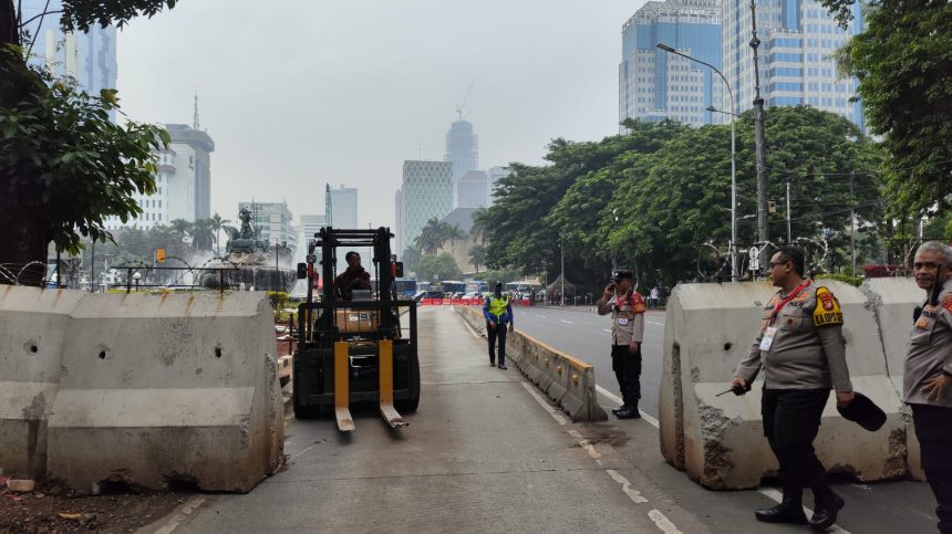 Kendaraan yang akan melintas dari arah Patung Kuda dan menuju Harmoni tak bisa melintasi Jalan Medan Merdeka Barat. Tetapi, arah sebaliknya masih dibuka hingga saat ini.