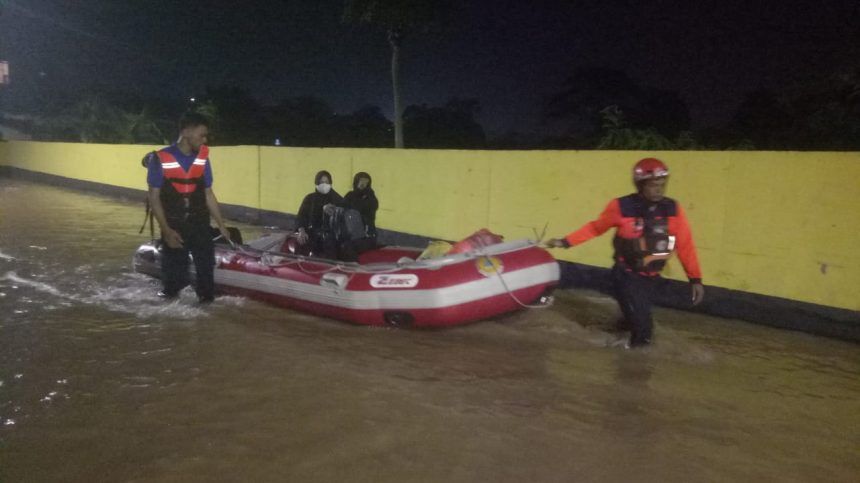 TANGSEL, teladankalimantan.com – Banjir merendam sedikitnya 177 rumah di Perumahan Pesona Serpong, Setu, Tangerang Selatan (Tangsel). Ketinggian air bervariasi antara 20 hingga 60 centimeter. Sejumlah warga pun nampak dievakuasi menggunakan perahu karet.