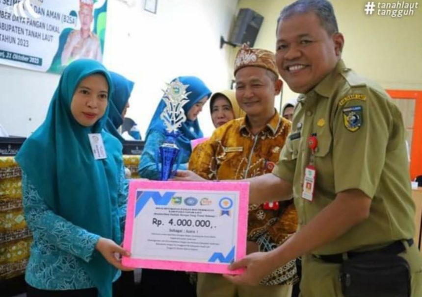 PELAIHARI, teladankalimantan.com- Tim Penggerak Pemberdayaan Kesejahteraan Keluarga (TP-PKK) Kecamatan Tambang Ulang, Kabupaten Tanah Laut berhasil meraih juara pertama lomba menu Beragam Bergizi Seimbang dan Aman (B2SA) tingkat Kabupaten Tanah Laut Tahun 2023, di Aula Diklat Loka Bina Praja Pelaihari, Selasa (31/10/2023)
