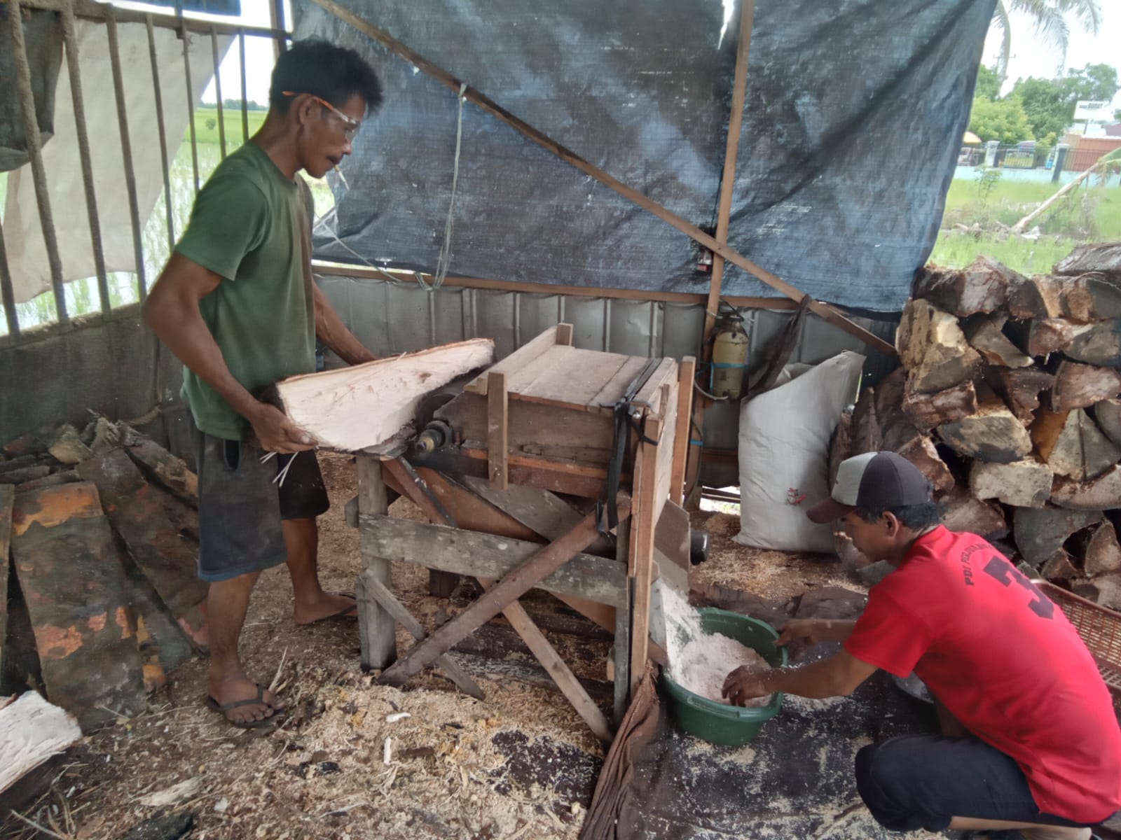 “Sebelum kita jual dalam bentuk serbuk, pohon rumbia sudah dipotong-potong terlebih dulu kita pabrik agar mendapatkan serbuk,” terangnya, saat ditemui, Senin (11/03/2024) sore.