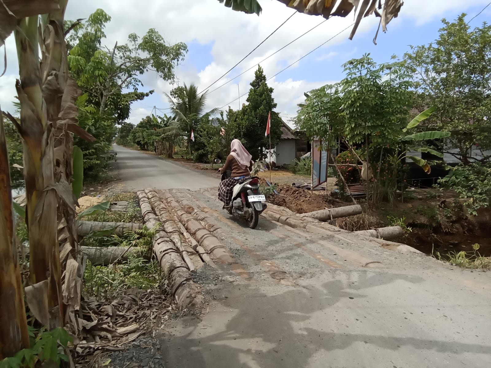 Lebih lanjut Ani mengemukakan, setelah pengaspalan jalan tersebut setahun lalu, jembatan terdahulu terbuat dari kayu ulin dibongkar dan digantikan dengan jembatan baru terbuat dari batang pohon kelapa.