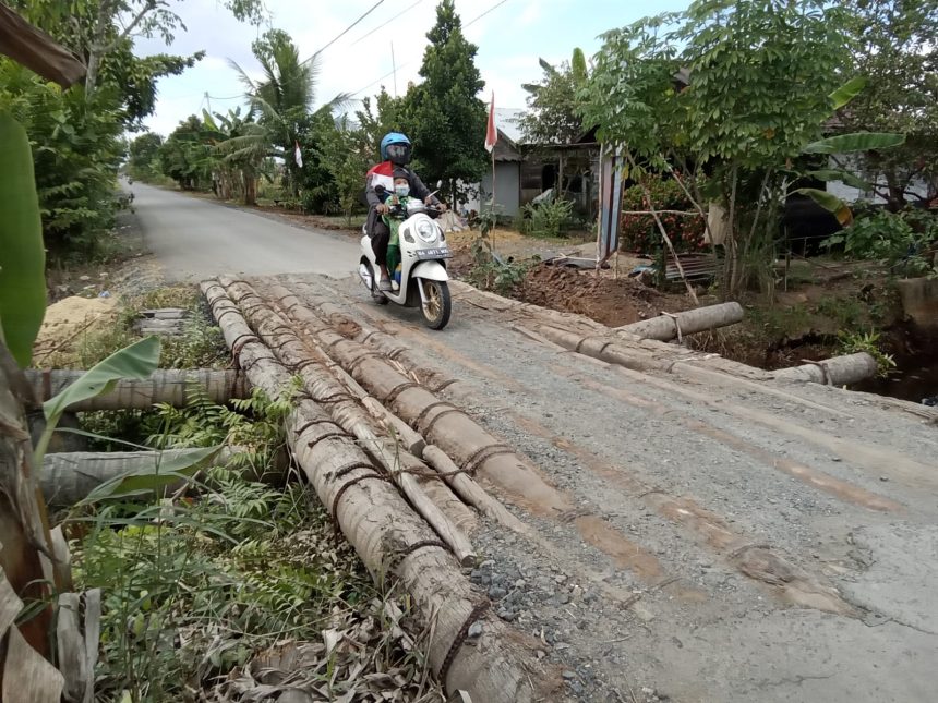 “Saat hujan turun pengendara melewati jembatan itu harus ekstra hati-hati karena bisa terpeleset ke anak sungai,” ungkapnya.