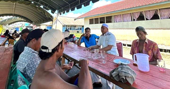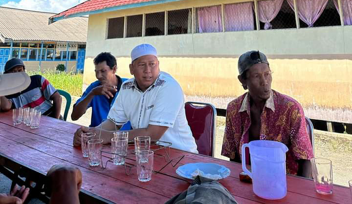 MARABAHAN,teladankalimantan.com- CEO PT Teladan Makmur Jaya (TMJ), H Bahrul Ilmi ketika hendak survei usaha miliknya di Desa Tabunganen, ternyata tak disengaja diminta singgah oleh warga setempat untuk berdiskusi ringan sambil menikmati es kelapa muda, Kamis (10/05/3024).