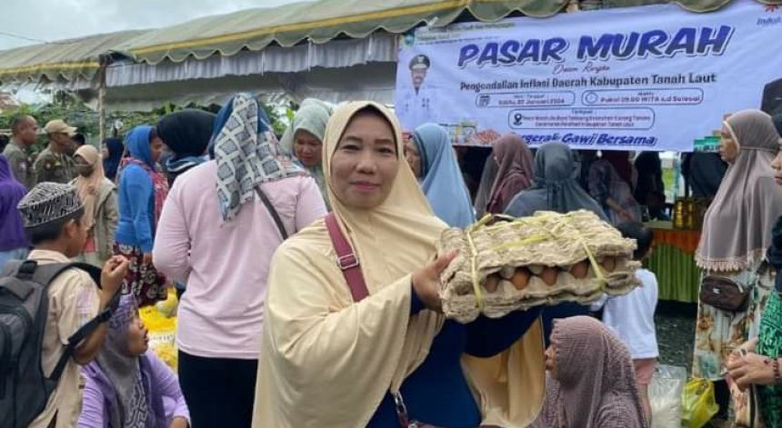 PELAIHARI, teladankalimantan.com- Warga Matah, Kecamatan Pelaihari, Kabupaten Tanah Laut merasa gembira digelarnya Pasar Murah oleh Pemerintah Kabupaten (Pemkab) Tanah Laut, di Pasar Matah, Sabtu (20/1/2024).