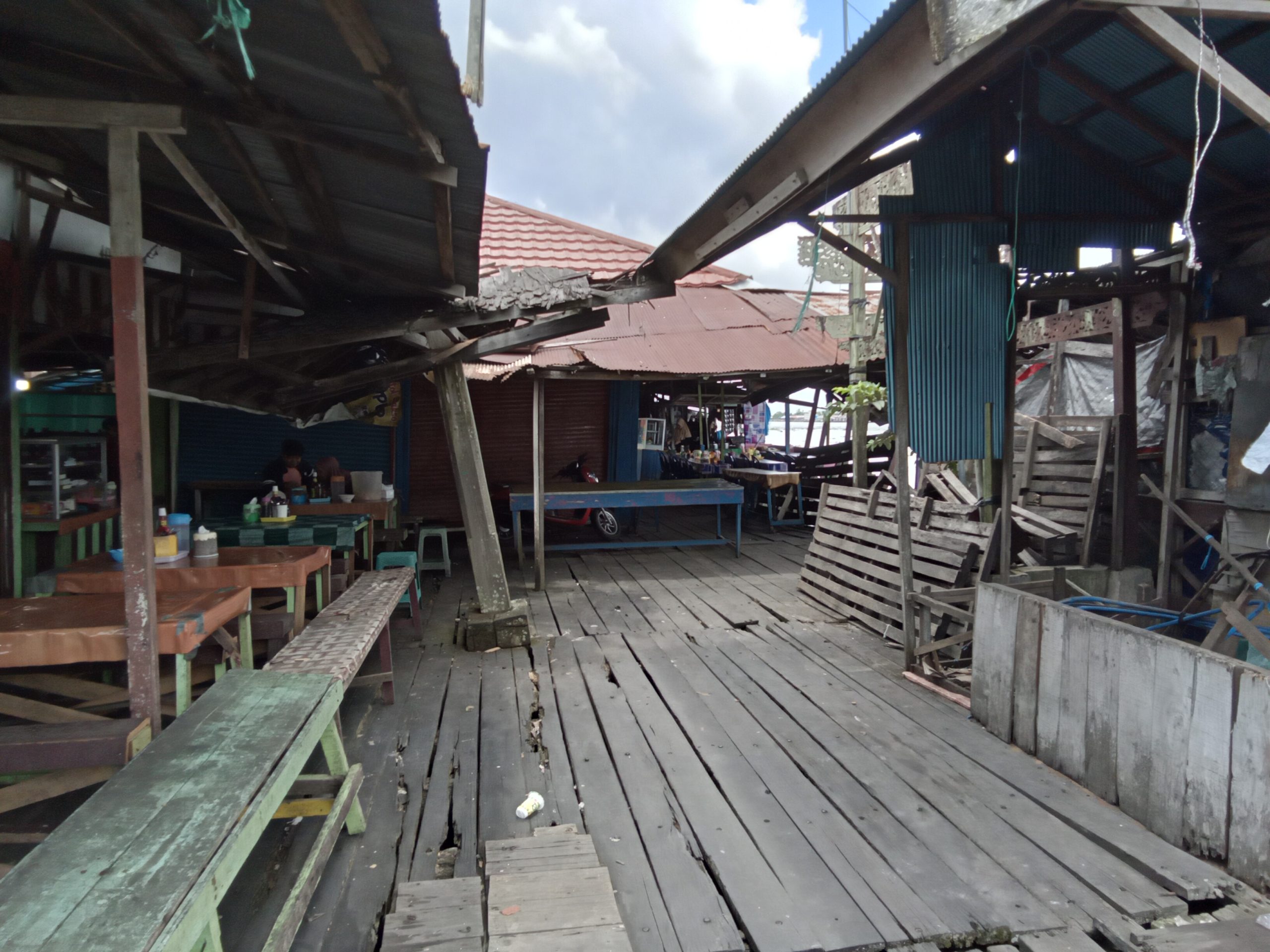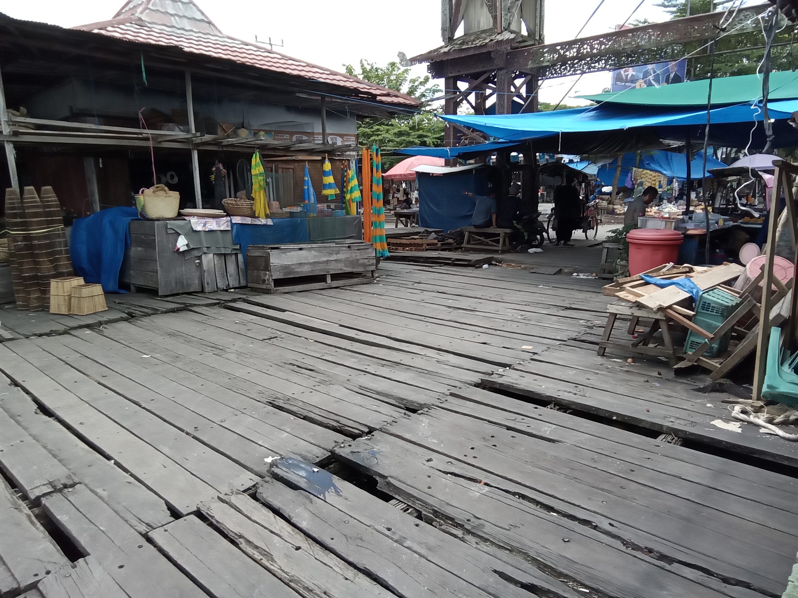 “Saat ini kondisi lantinya banyak bolong dan sebagian bangunannya sudah kropos termakan usia,” ujar Siti, salah satu penjual makanan dan minuman di sekitar pelabuhan klotok, ketika ditemui, kemarin.