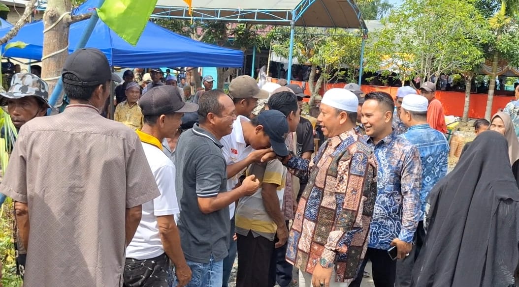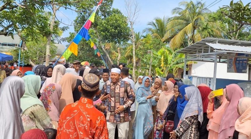 MARABAHAN, teladankalimantan.com—Warga desa Tabunganen, Kecamatan Tabunganen menyambut hangat kedatangan tokoh masyarakat Batola DR H Bahrul Ilmi SH MH saat menghadiri acara resepsi perkawinan Briptu Muhammad Rifaldi SH dan Bripda Khusnul Khotimah pada Minggu 21 Januari 2024 yang berlangsung di Desa Tabunganen, Batola.