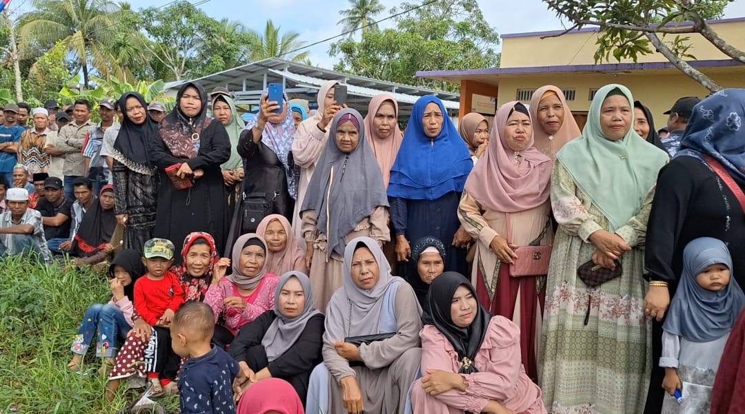 Tampak warga yang berada di lokasi panggung hiburan tertuma kaum ibu-ibu yang pada umumnya mengenal sosok H Bahrul Ilmi mengelu-elukan tokoh yang kerap berkunjung ke pelosok desa tersebut.