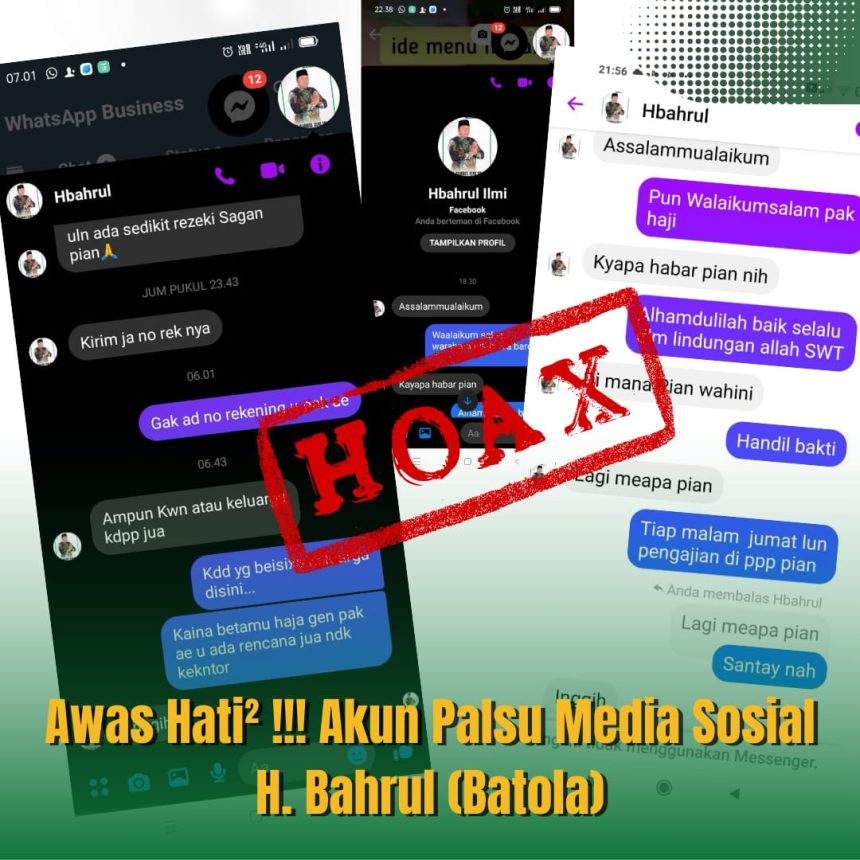 Terlebih dalam akun media sosial yang mencatut nama H Bahrul Ilmi, oleh orang tak dikenal, dan tidak bertanggung jawab tersebut seolah-olah membuat narasi dengan modus menjanjikan, jika H Bahrul Ilmi akan mengirimkan dana untuk warga masyarakat yang membutuhkan bantuan.