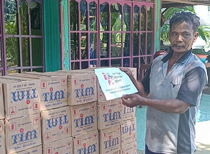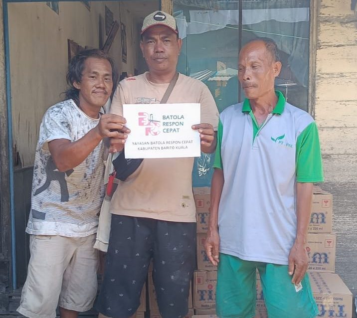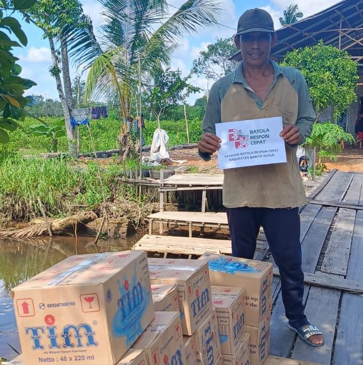MARABAHAN, teladankalimantan.com—Yayasan Batola Respon Cepat (BRC) kembali menyalurkan ratusan dus air mineral kepada warga di tujuh desa yang ada di sejumlah kecamatan di Kabupaten Barito Kuala, Rabu (27/12/2023).